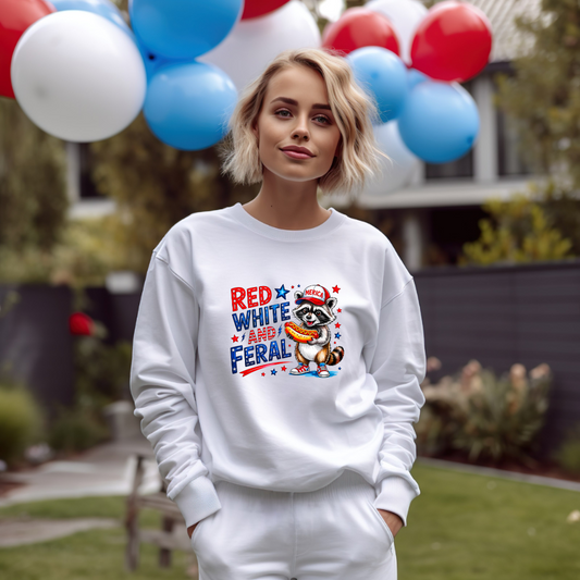 Red White and Feral Raccoon Shirt | Funny Patriotic Graphic Tee