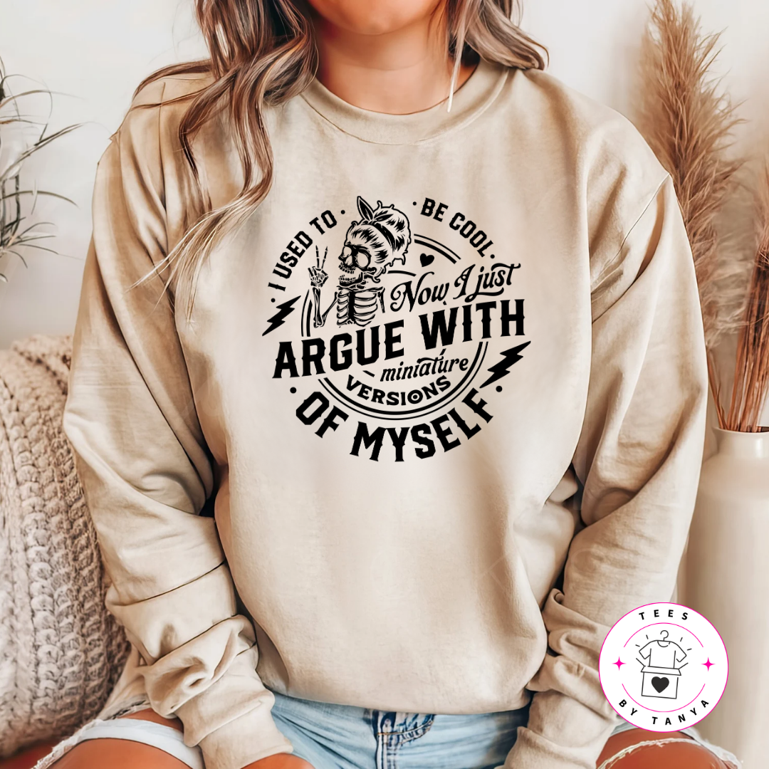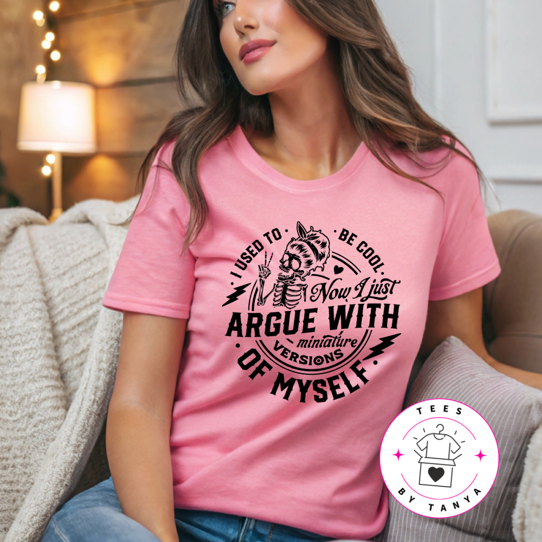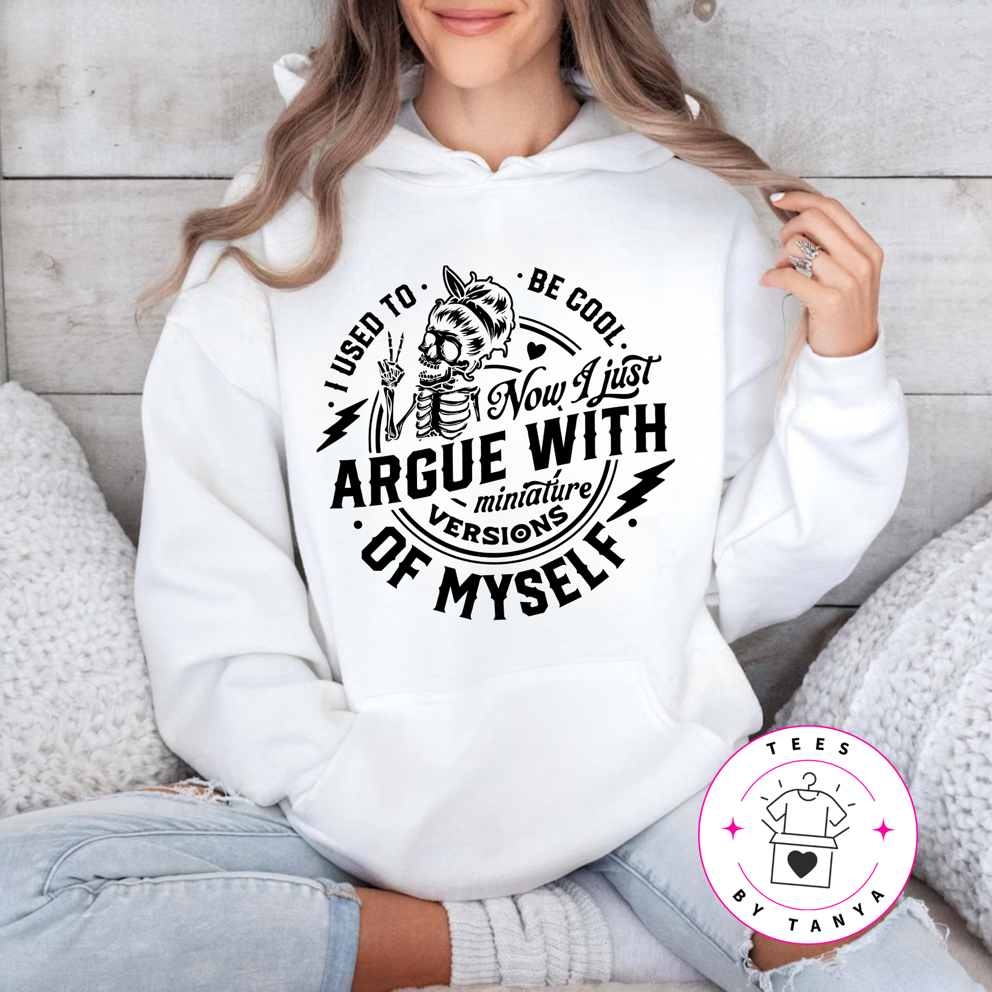 Motherhood: where being "cool" is replaced with negotiating bedtime, snack choices, and tantrums! This "I Used to Be Cool, Now I Just Argue with Miniature Versions of Myself" skeleton graphic tee, sweatshirt, or hoodie is perfect for moms who understand the hilarious chaos of parenting.
