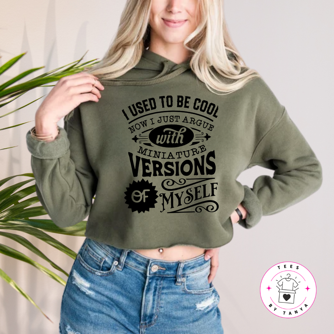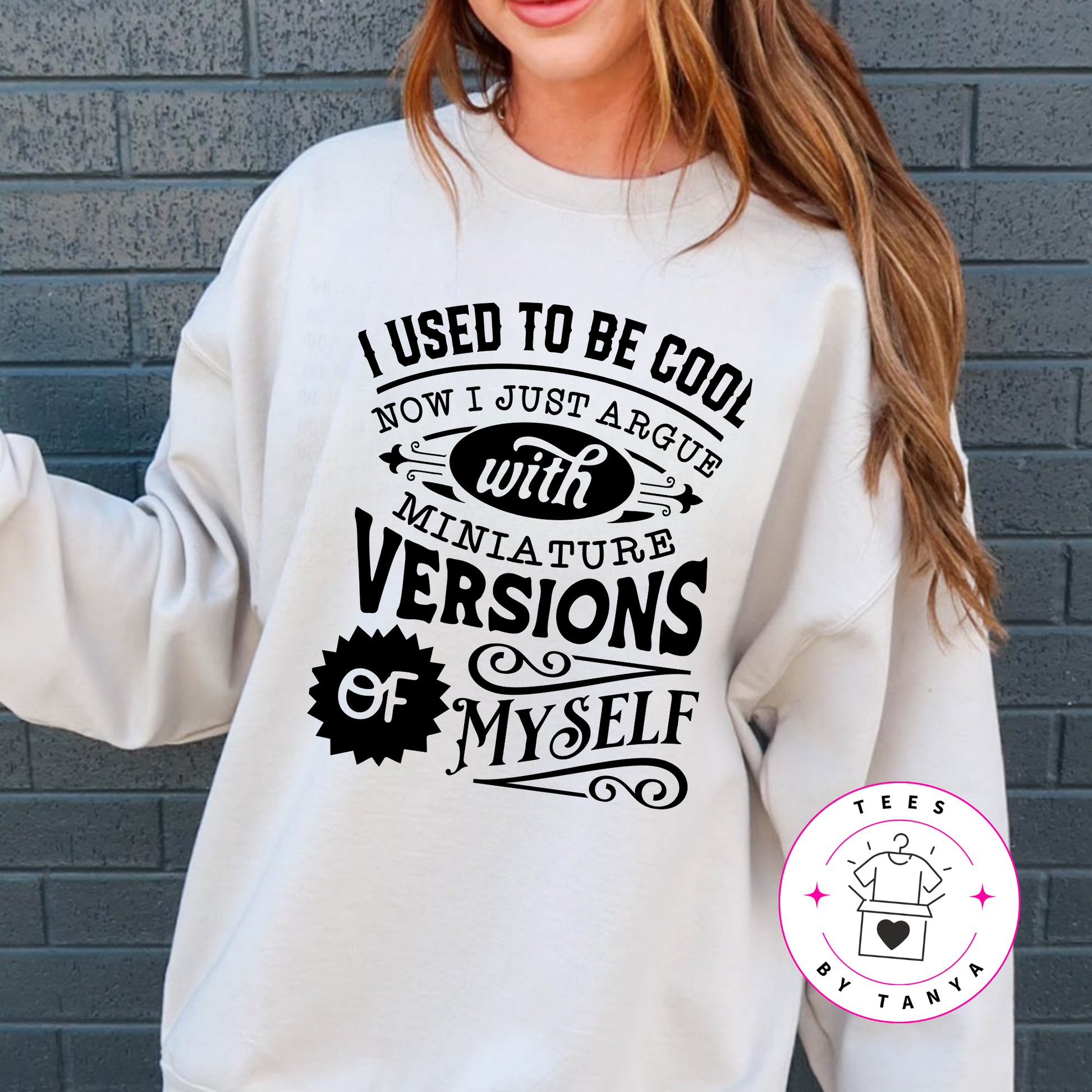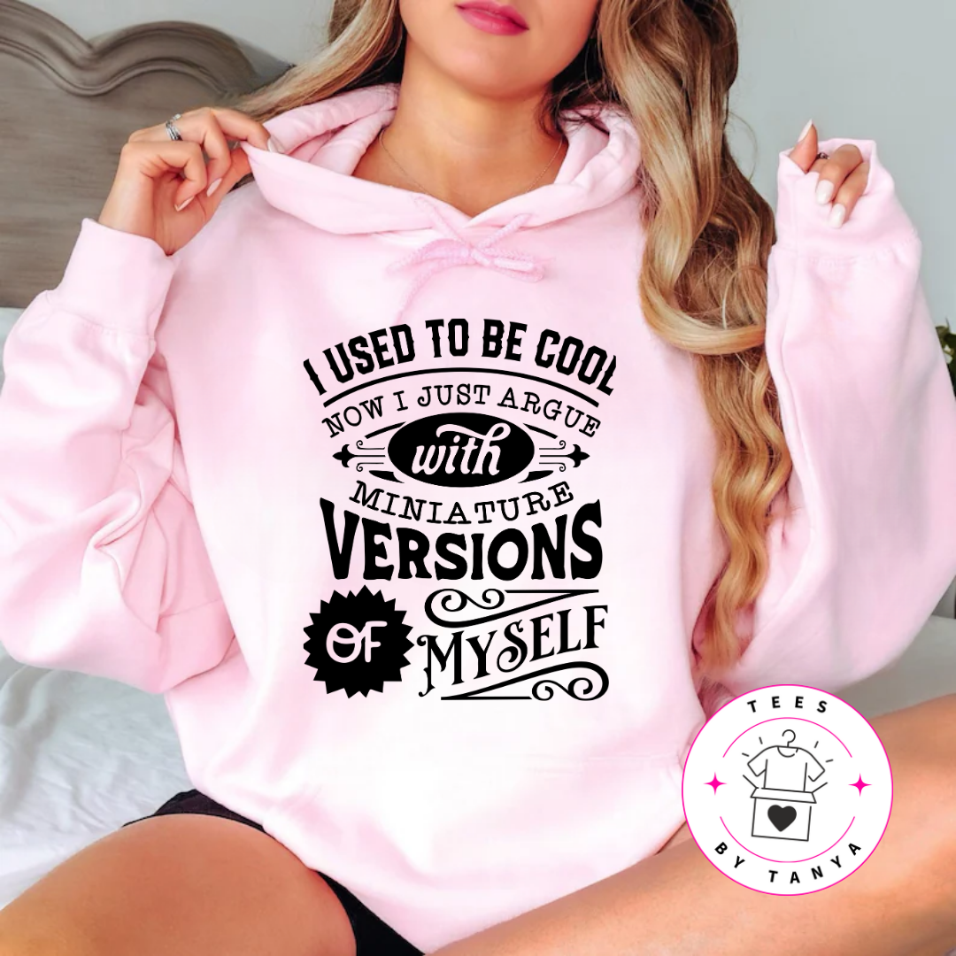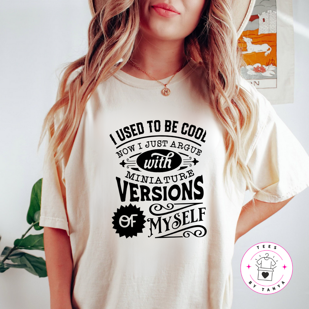 Parenthood hits different! If you used to be the life of the party but now spend your days debating with tiny humans, this shirt is for you! Featuring the hilarious phrase "I used to be cool, now I just argue with miniature versions of myself," this design is perfect for moms and dads who know the joy (and struggle) of parenting.