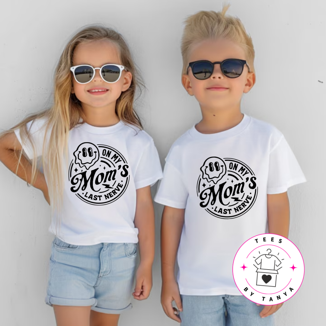 Moms, we know you’ve been there! Our "On My Mom’s Last Nerve" t-shirt, sweatshirt, or hoodie is the perfect blend of humor and real-life parenting moments. Featuring a fun, expressive emoji, this design is a must-have for moms with a great sense of humor! Ideal for everyday wear or as a hilarious Mother’s Day, birthday, or holiday gift. Soft, comfy, and available in multiple colors and sizes!