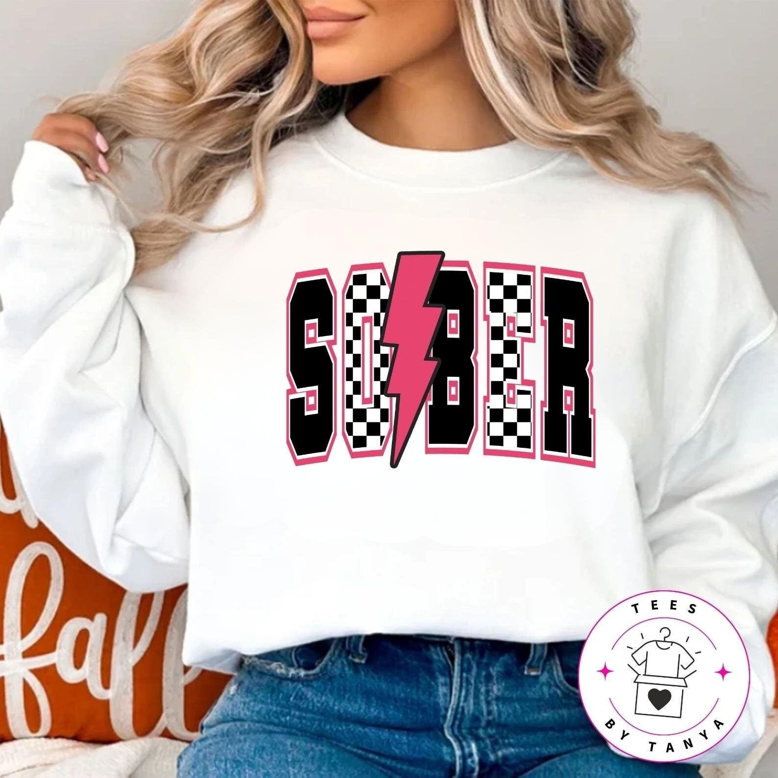 Celebrate strength, resilience, and your recovery journey with our bold "SOBER" design featuring a striking lightning graphic in the middle. This stylish and empowering shirt, sweatshirt, or hoodie is perfect for showcasing your pride and commitment. Made from premium-quality materials, it’s designed for comfort and durability, making it ideal for everyday wear or as a thoughtful gift for someone on their sobriety journey. Available in multiple sizes and colors to suit any style.
